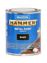 • Maston HAMMER SMOOTH (sileä) METALLIMAALI jossa ruosteenesto-, pohjamaali- ja pintamaali yhdessä muodostaa lujan, kiiltävän pinnan kaikille metallipinnoille. Soveltuu sisä- ja ulkokäyttöön. Voidaan levittää suoraan käsiteltäville pinnoille, myös ruosteisille pinnoille. Ilmaa ja kosteutta läpäisemätön maalikerros pysäyttää korroosion ja suojaa metallipintaa tehokkaasti. Soveltuu myös puupintojen käsittelyyn.