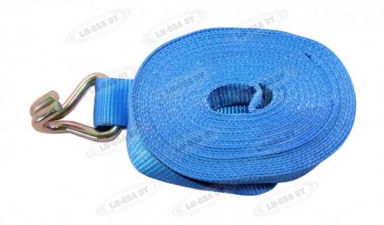 Pituus 0,5 + 11,5 m. Normaaliin sidontaan kuorma-autoissa. Vakiopäätteinä teräskaksoislankakoukut. Nauhan leveys 50 mm ja...