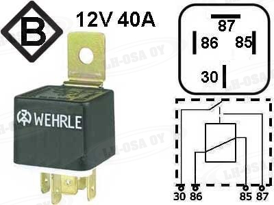 Rele 12V 40A, 4-nap.