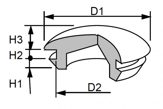 D1 = 31 mm D2 = 25 mm H1 = 5 mm H2 = 5 mm H3 = 2 mm