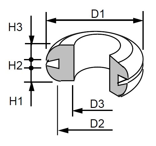 D1 = 18 mm D2 = 12 mm D3 = 9 mm H2 = 1-3 mm H1 = 3,5 mm H3 = 3,5 mm