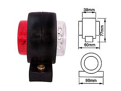 äärivalo, kumivarrella, punainen/kirkas, 10-30 V