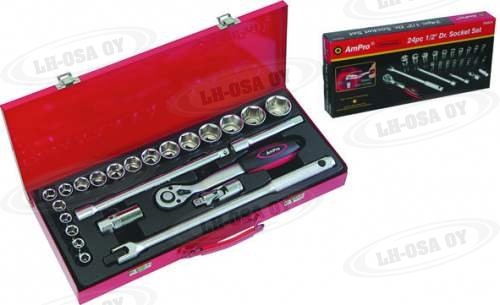 Sarja sisältää: 20 kpl 1/2" hylsyjä 8, 9, 10, 11, 12, 13, 14, 15, 16, 17, 18, 19, 20, 21, 22, 23, 24, 27, 30, 32 mm 1 kpl 1/2"...